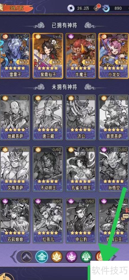 - 进入神将列表,点击图鉴即可查看。