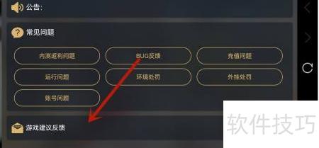 - 点击游戏建议反馈入口进入。