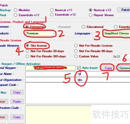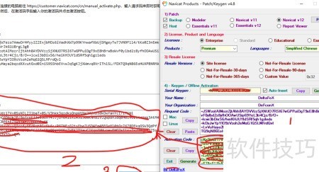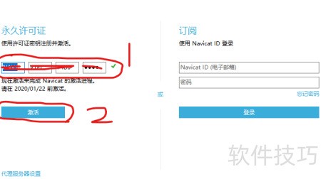 - 将激活码复制并粘贴至Navicat Premium 12的相应输入框中完成激活。