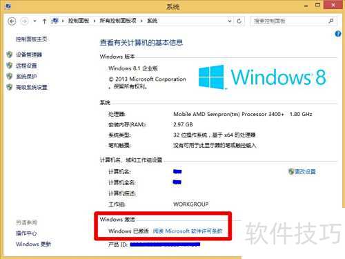 - 稍后将激活Windows 8.1系统,可通过按下Win键与Pause Break键查看激活状态,屏幕上会显示相关激活信息。