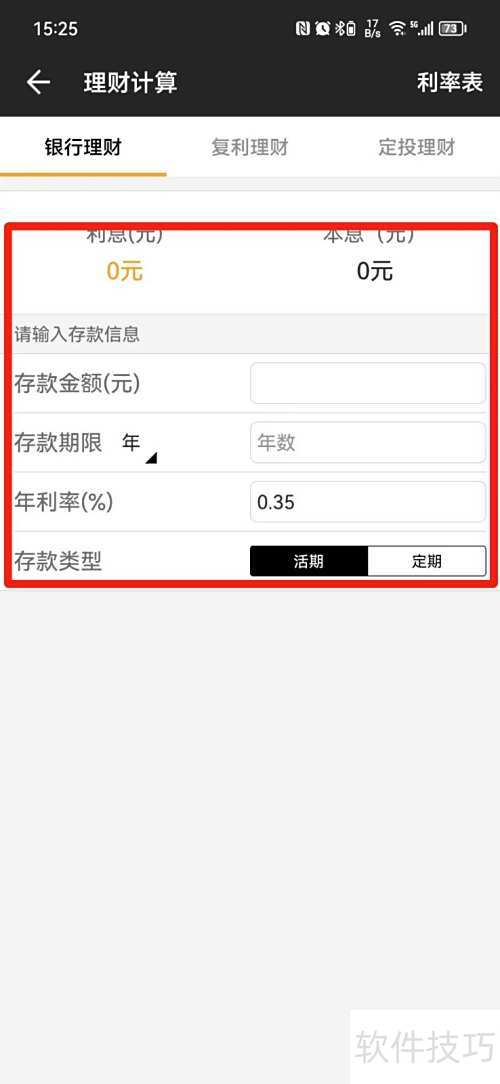 - 输入年利率1.95%和存款金额,系统自动计算应得利息。