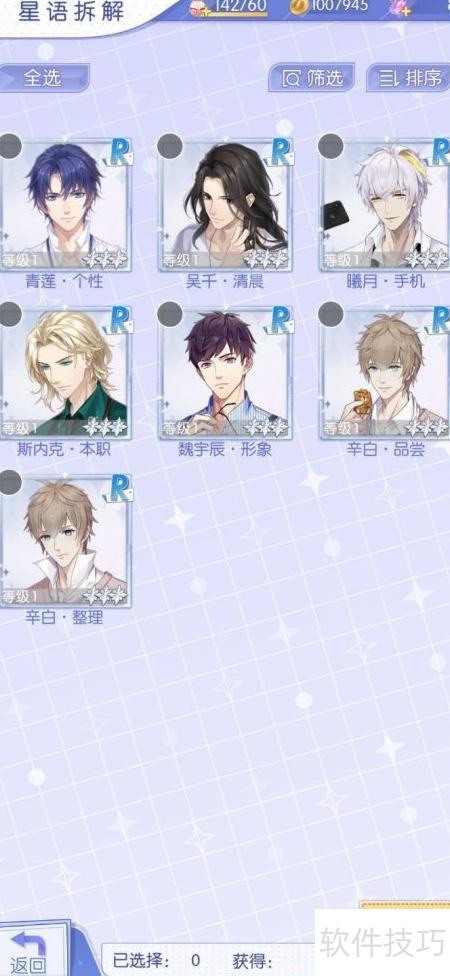 4、 高品质星语卡牌默认处于锁定状态,右上角有锁形图标,无法拆解。因此目前仅支持分解低品质的R级星语卡牌。