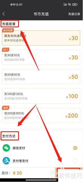 - 进入充值页面,选择套餐与支付方式后,点击立即充值即可完成。