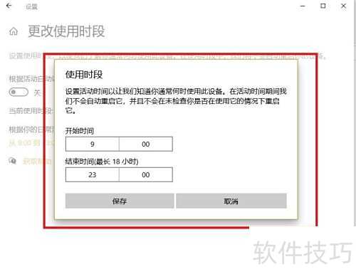 点击更改使用时段,进入设置界面后可调整活动时间。系统在此期间不会因更新自动重启,确保您的使用过程不会中断。