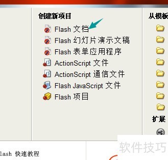 - 在开始菜单中找到FLASH程序并打开,创建一个新的FLASH文档。
