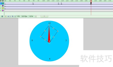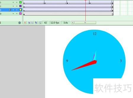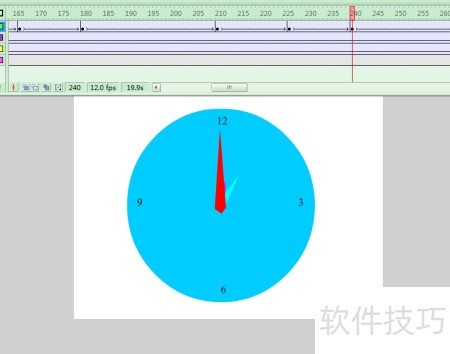 利用FLASH技术模拟时钟运行,展现分针与秒针的连续转动效果。