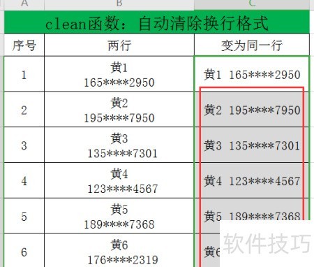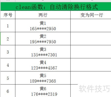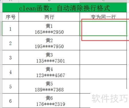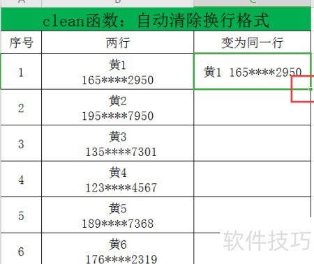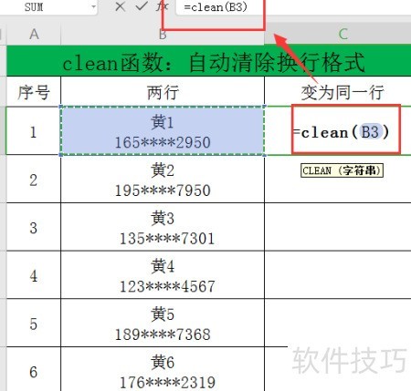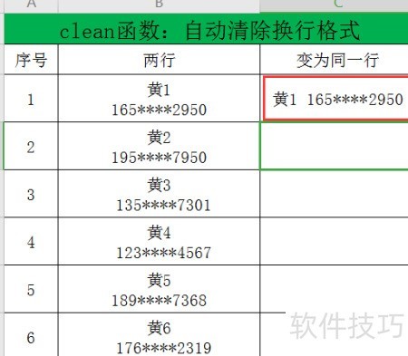 利用clean函数去除换行符,将原本两行内容合并为一行。