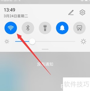- 下拉手机快捷栏,找到并关闭无线网络。