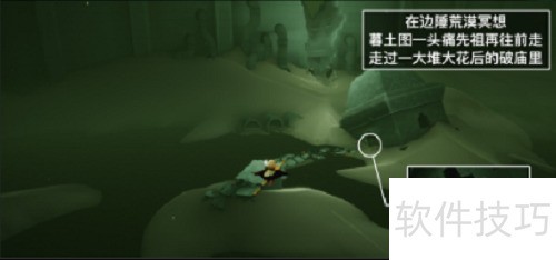- 于边陲荒漠暮土图中,于破庙前石碑光圈处静坐冥想,于花丛前留言完成第四任务。