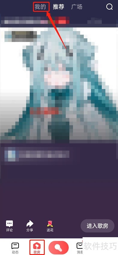 - 打开全民K歌,进入歌房,搜索我的房间。