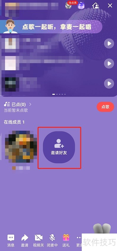 - 进入个人歌房后,可邀请好友或等待他人加入一起欢唱。