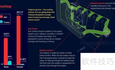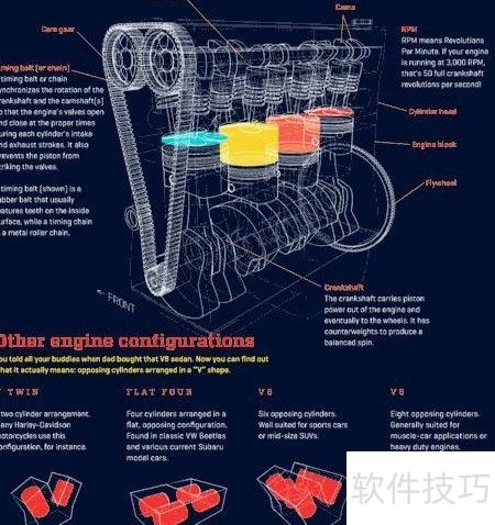 - 蓝色代表空气,灰色是废气,引擎通过爆炸产生的动力推动发动机运转。