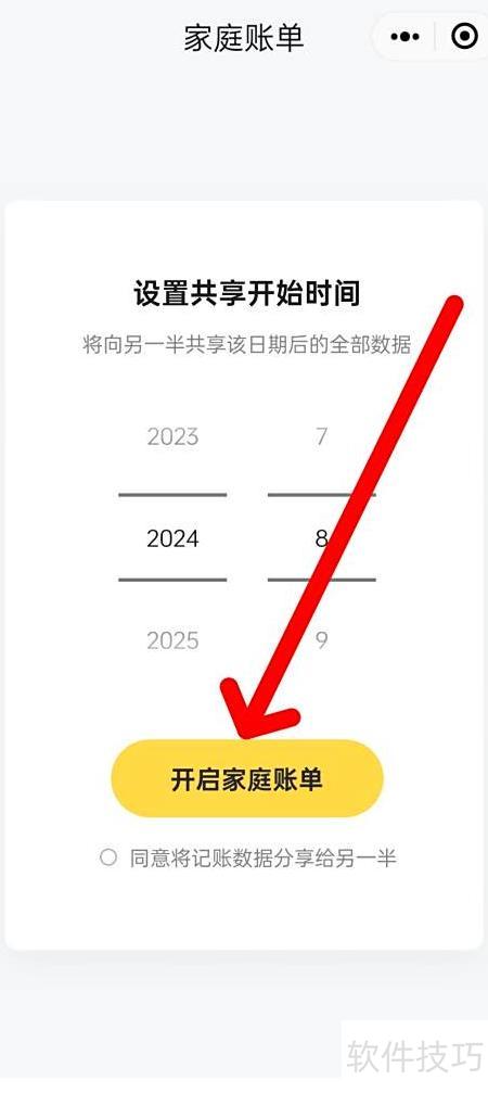 - 进入家庭账单页面,点击开启按钮即可使用。