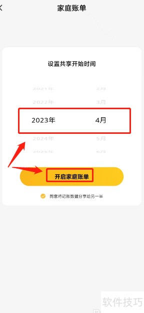 - 打开家庭账单,选定共享起始时间,确认开启即可。