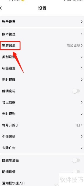 - 打开点滴记账应用,进入设置选择家庭账单。