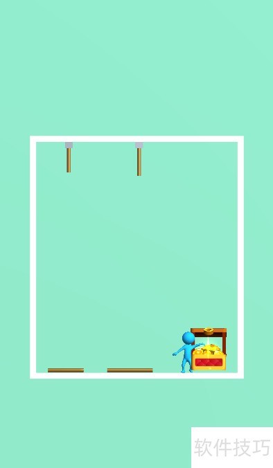 - 蓝色小人顺利抵达底部打开宝箱,随即触发通关动画,所示,任务完成。