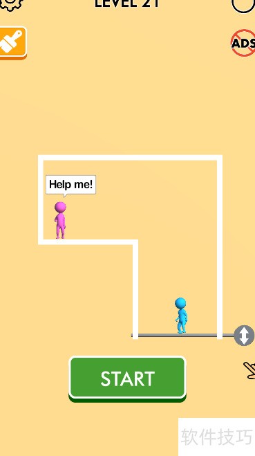 - 关卡目标是解救左上角的粉色人,蓝色人位于右下角,具体情形见图示。