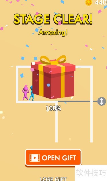 - 粉色人物顺利获救,通关动画弹出,所示,成功通过关卡。