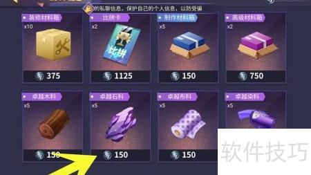 - 在商店列表中找到卓越石料并点击其图案。