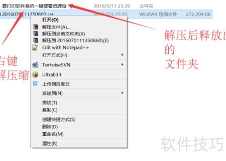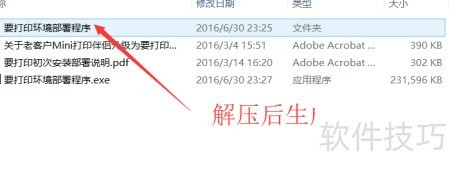 - 解压软件包,具体步骤详见要打印初次安装部署说明.pdf中的详细安装指南。