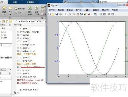- 第三,使用plotyy命令绘制双Y轴二维图,在命令窗口输入相应代码后生成图5。