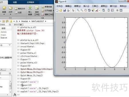 Fplot函数需传入@符号定义的函数句柄,而ezplot则应使用单引号包裹函数表达式。两者在参数设置上亦有区别,其中变量范围若需指定步长,应用逗号分隔各参数,不可使用冒号。例如最后一条指令所示,正确使用逗号进行分隔。