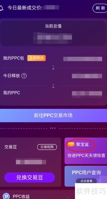 进入闻闻PPC聚宝盆,点击右侧能量礼包并存入,即可查看存入历史记录。