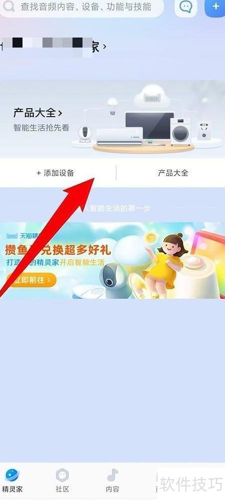 - 开启天猫精灵,进入添加设备界面。