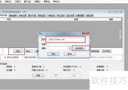 - 启动网页自动化工具,选择并执行网页自动刷新监控功能(1)。