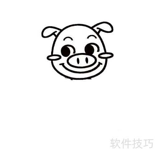 - 先画小猪的头和两只耳朵。