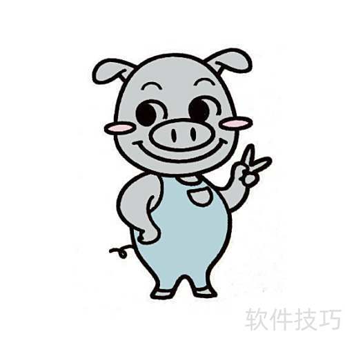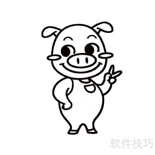 剪刀手小猪简笔画教程