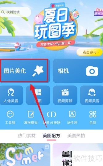 - 打开美图秀秀,进入首页选择图片美化功能。