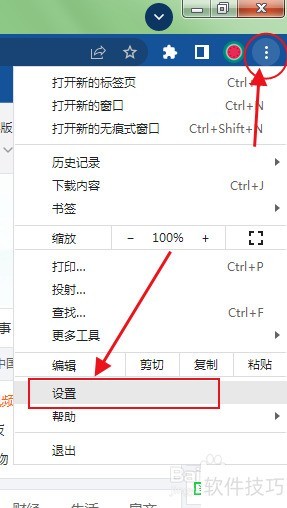 - 点击浏览器菜单中的设置项。