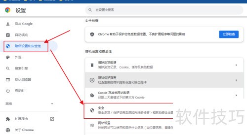 - 进入隐私与安全设置,选择安全项进行操作。