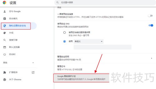 在谷歌浏览器中,进入设置可查看Google高级保护计划详情。