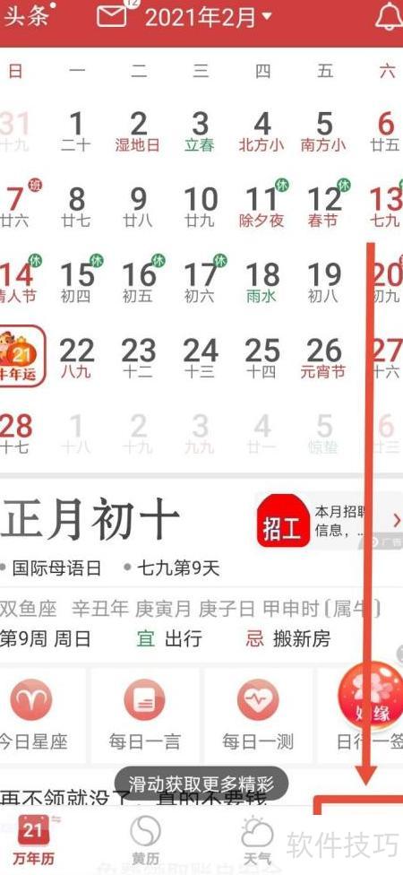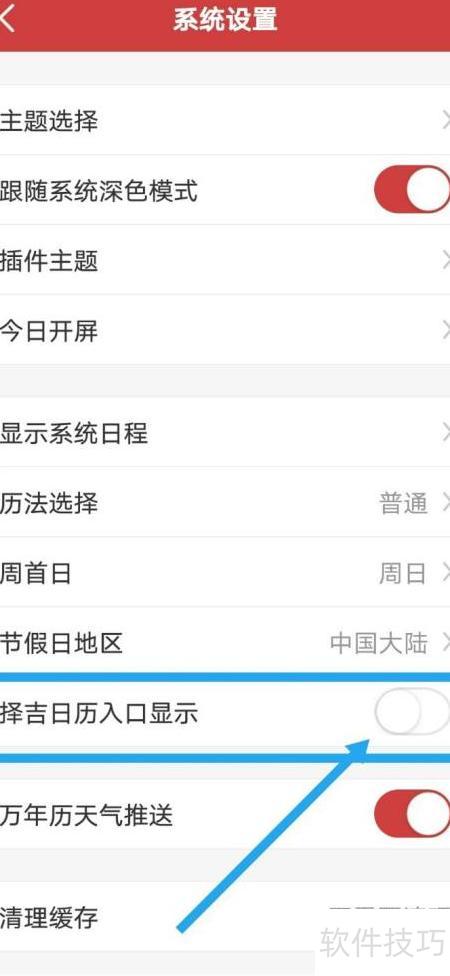 如何设置万年历中的择吉日入口显示?下面为您演示具体操作步骤。