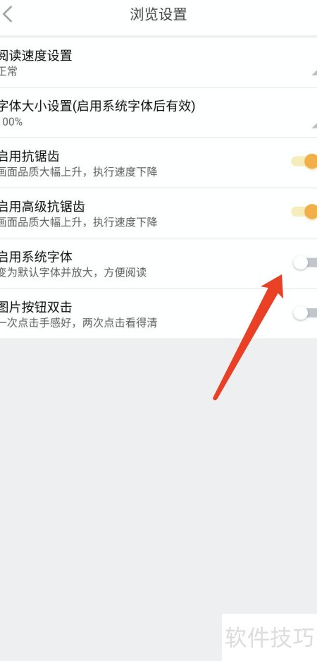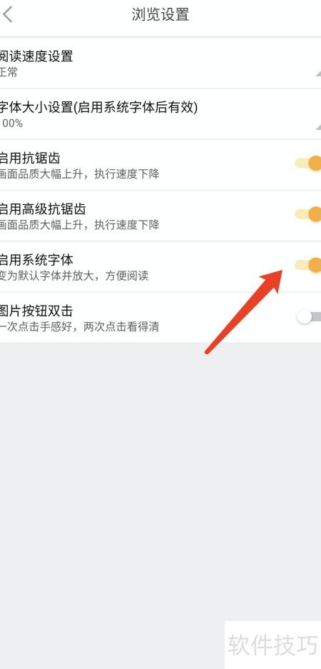 - 开启系统字体功能,启用相应设置。