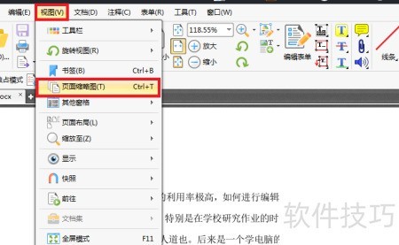 - 点击菜单栏的视图,选择显示页面缩略图。