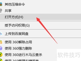 - 在菜单中找到并点击打开方式进行选择。