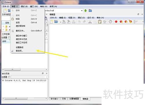 - 在Octave主程序中,选择编辑菜单下的首选项选项并打开。