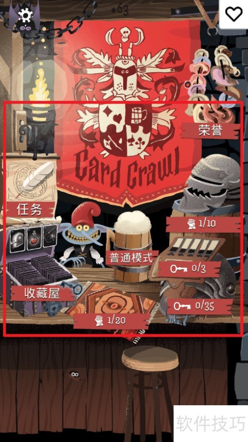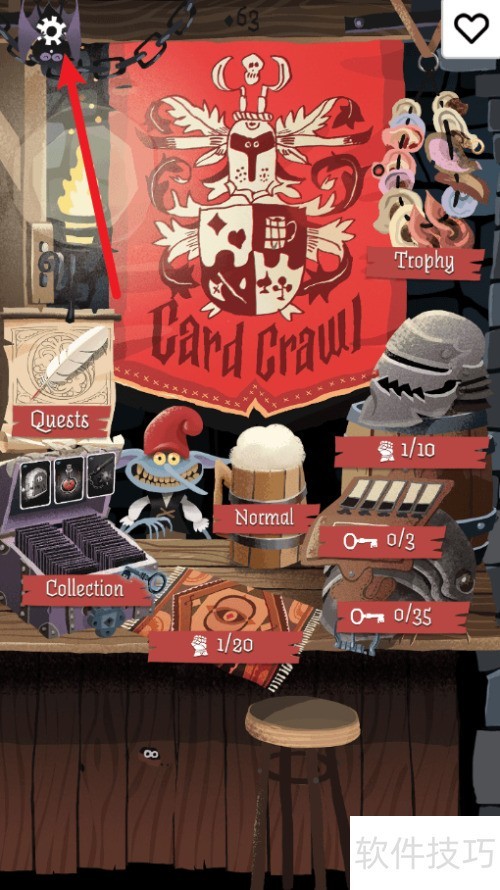 - 打开Card Crawl,点击主界面右上角的设置按钮。