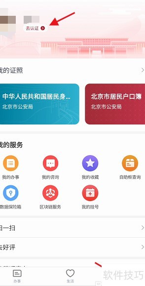 当您登录账号时,请先点击右下方“我的”选项,在此找到顶部的“去认证”入口。若您的账户尚未通过实名认证,则请选择合适的方式进行验证。只有实名认证过的账号才能使用查询功能!