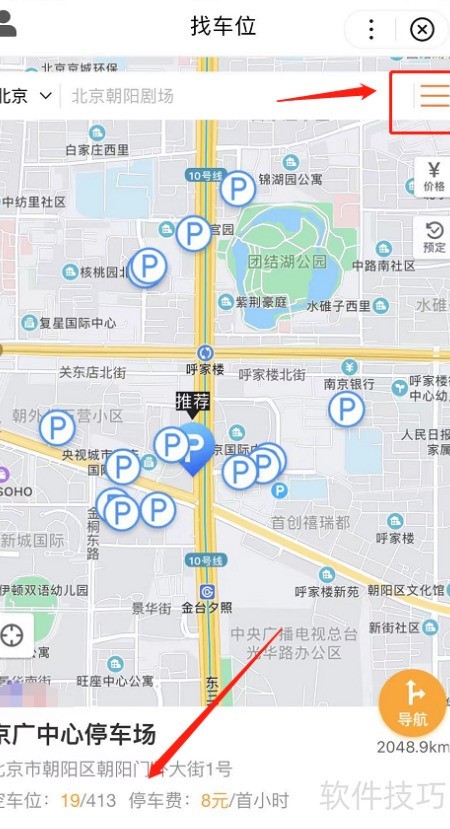 - 在找车位页面的搜索栏输入朝阳剧场,然后点击搜索即可。