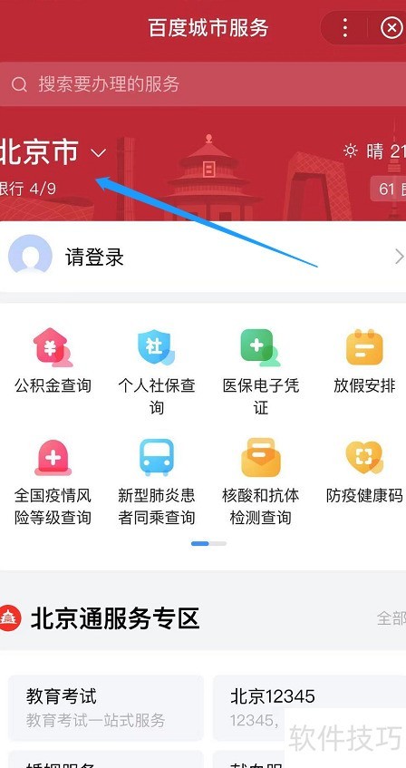 - 打开百度城市服务小程序,进入北京首页。