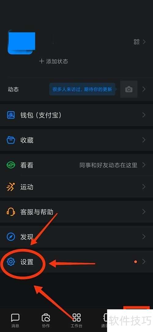 - 进入钉钉首页,点击右下角我的,再进入设置选项。