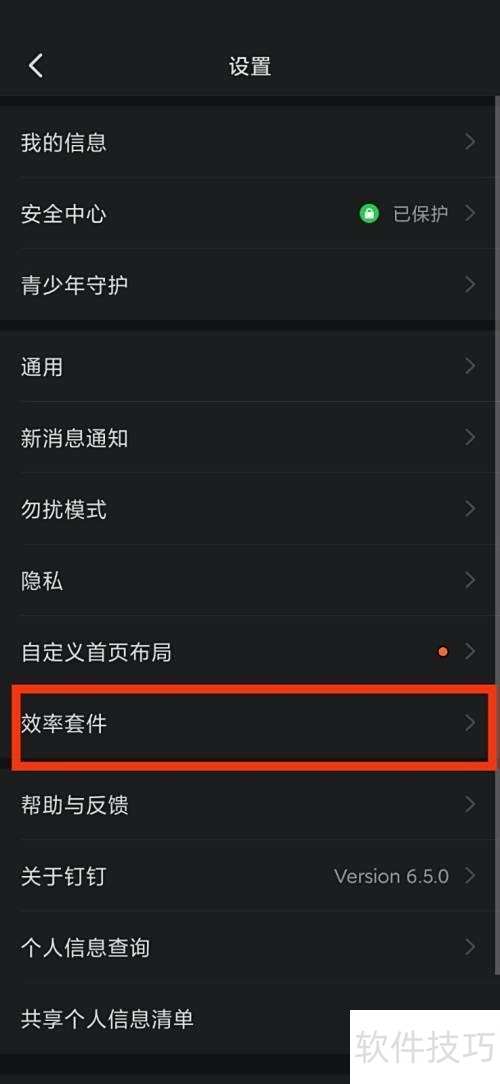 - 最终可在钉钉设置中找到并查看效率套件功能。