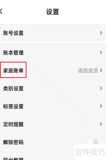 - 进入设置,选择家庭账单选项。