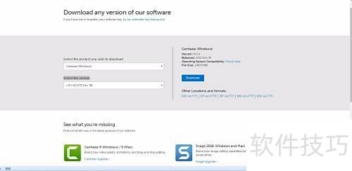 - 前往Camtasia官网,选择历史版本进行官方下载。