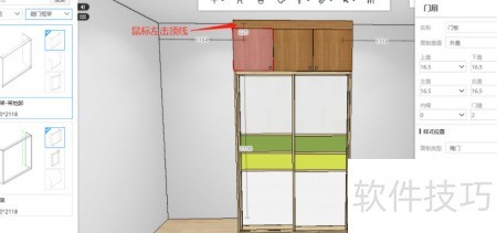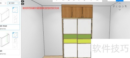 1、 用鼠标左键点击选中门板(模板材质),然后将鼠标移至刷子图标并点击材质刷,此时鼠标指针将变为刷子形状。