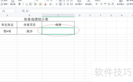 - 点击选择要输入体育成绩的单元格。